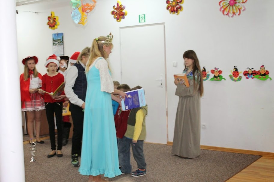 W dniu 31.10.2014 Przedszkolaki z grupy „Biedronek” zostały zaproszone do Gminnej Biblioteki publicznej w Krościenku Wyżnym na pasowanie na czytelnika biblioteki. Głównym celem uroczystości było zachęcenie najmłodszych do korzystania z biblioteki, wypożyczania książek, oraz nauki samodzielnego czytania. Zanim jednak odbyło się pasowanie dzieci miały okazję poznać bohaterów znanych im bajek i dowiedzieć się od nich jak należy dbać o książki i czego nie wolno robić czytając książkę. Przedszkolaki odgadywały zagadki dotyczące bajek i baśni. Po występie i zabawach nadszedł uroczysty moment pasowania na czytelnika. Każdy nowy czytelnik otrzymał książkę i słodycze. Radość dzieci była ogromna, a przede wszystkim rozpierała ich duma, że mogą już samodzielnie wypożyczać książki.
