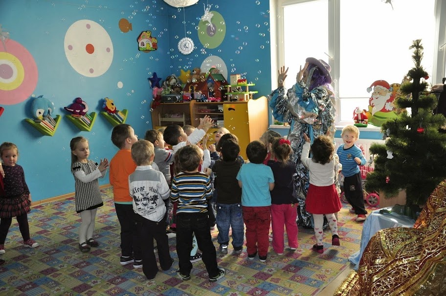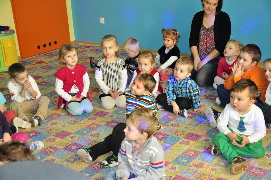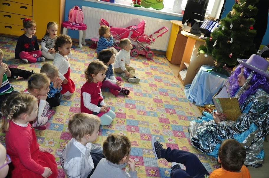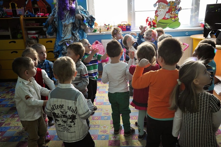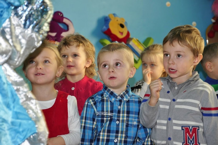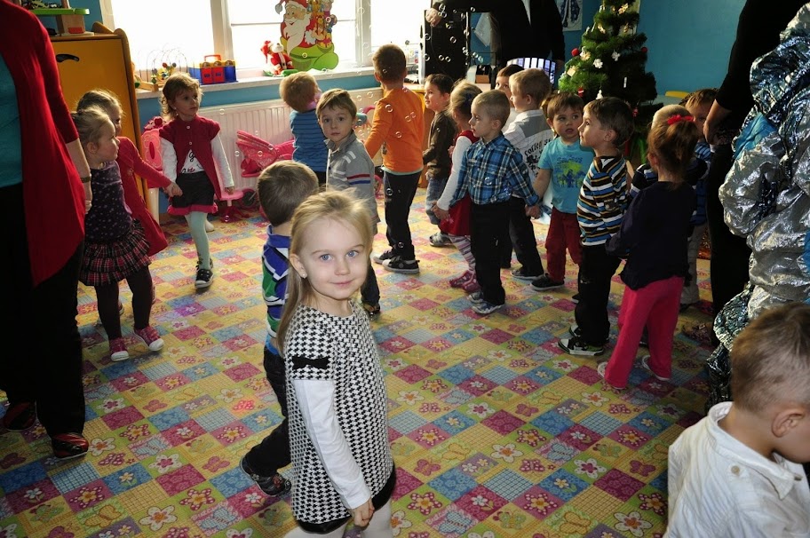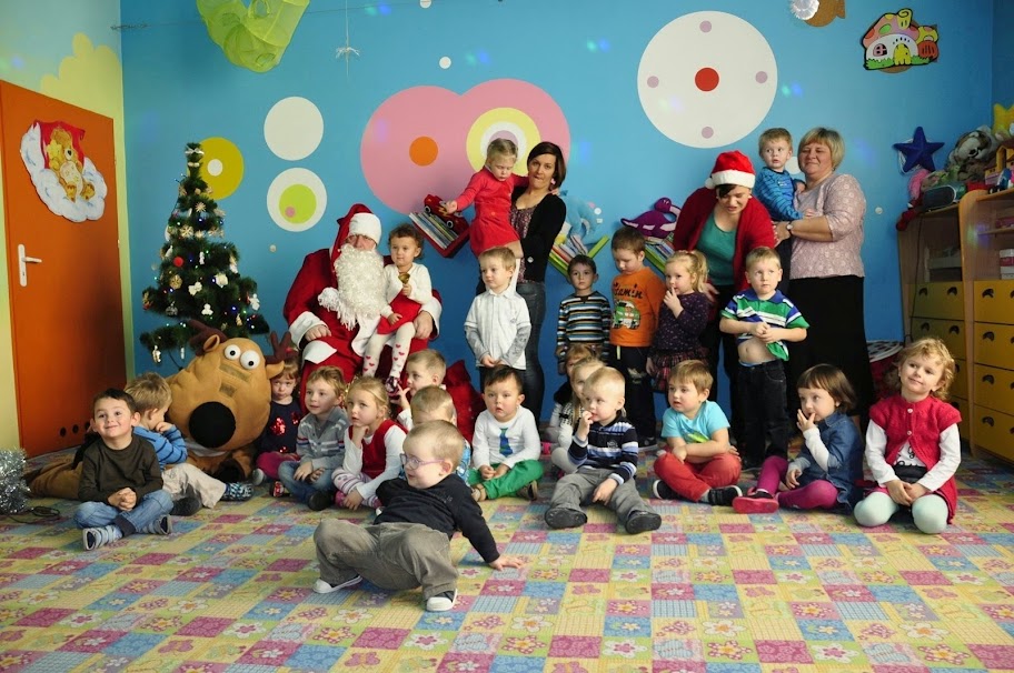 Zanim zostały rozdane paczki, dzieci brały udział w zabawach muzyczno-ruchowych, "poszukując" Mikołaja. Były bardzo podekscytowane i uradowane kiedy w końcu Mikołaj się pojawił z prezentami dla dzieci.
