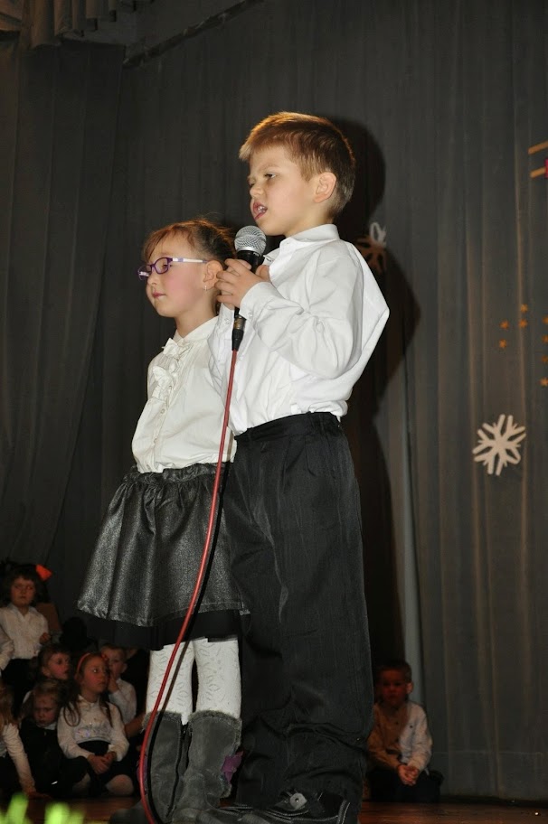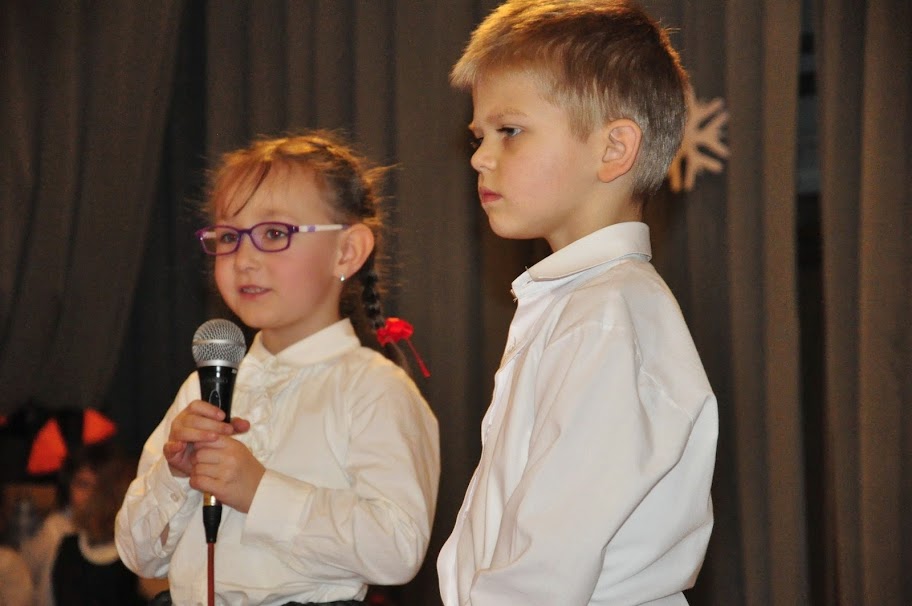 Po przemowie Pani Dyrektor przekazała mikrofon naszym małym aktorom.
